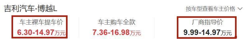 吉利博越L售价9.99-14.97万元,车主提车价为6.30万元起,标配车型优惠了3.69万元。实际上,很多地区根本拿不到这么大的优惠,我相信6.30万元的入门价格是包含了国补或省补的,这款车存在优惠,然后再加上2万元的国补或1.5万元的省补,最终才到了6万多。