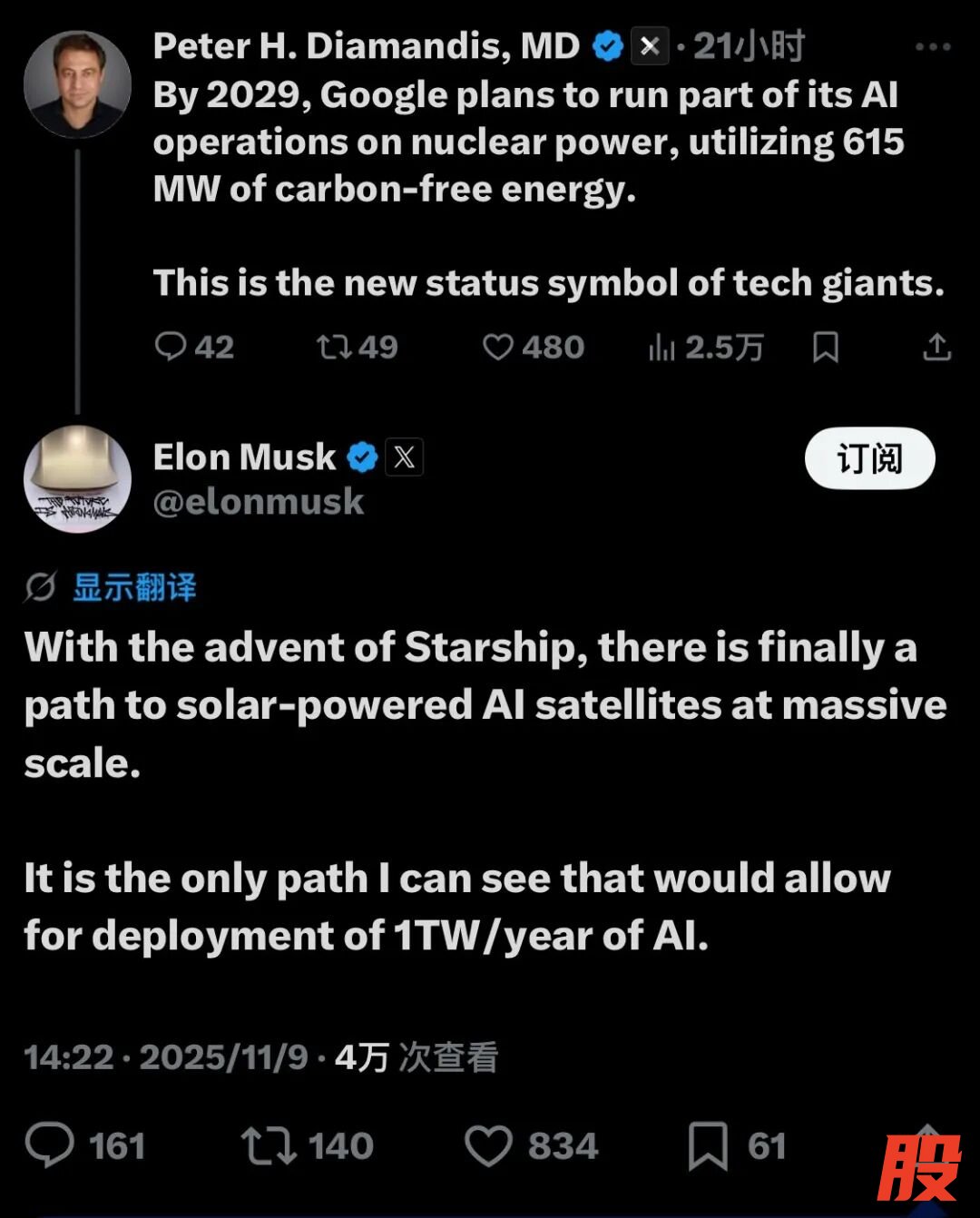 值得注意的是,这是他对“2029年谷歌计划使用核能运行部分AI运营”的回应。