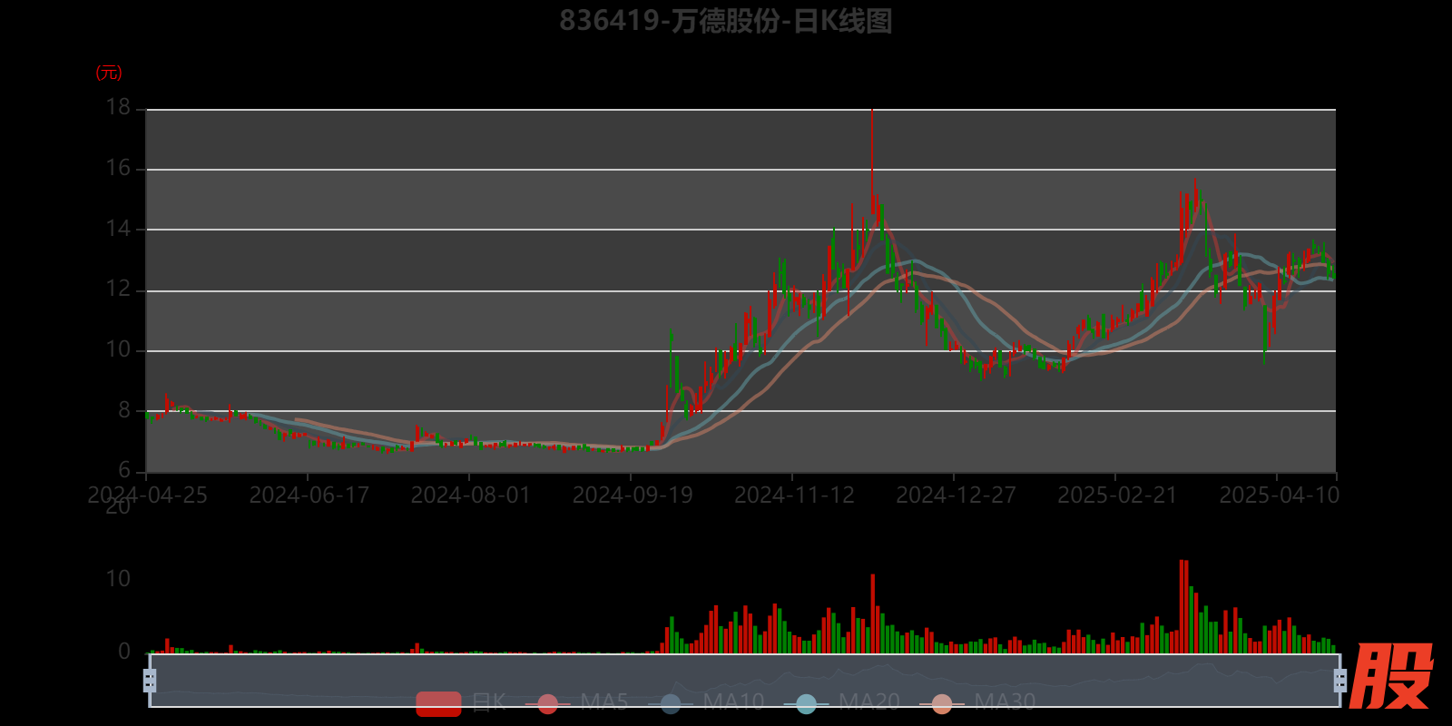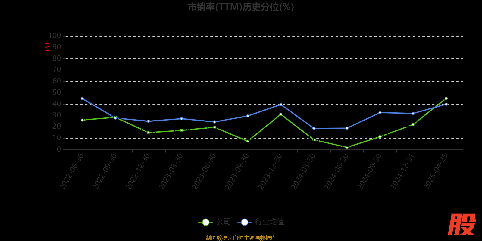 以4月25日收盘价计算,万德股份目前市盈率(TTM)约为43.13倍,市净率(LF)约2.16倍,市销率(TTM)约2.3倍。